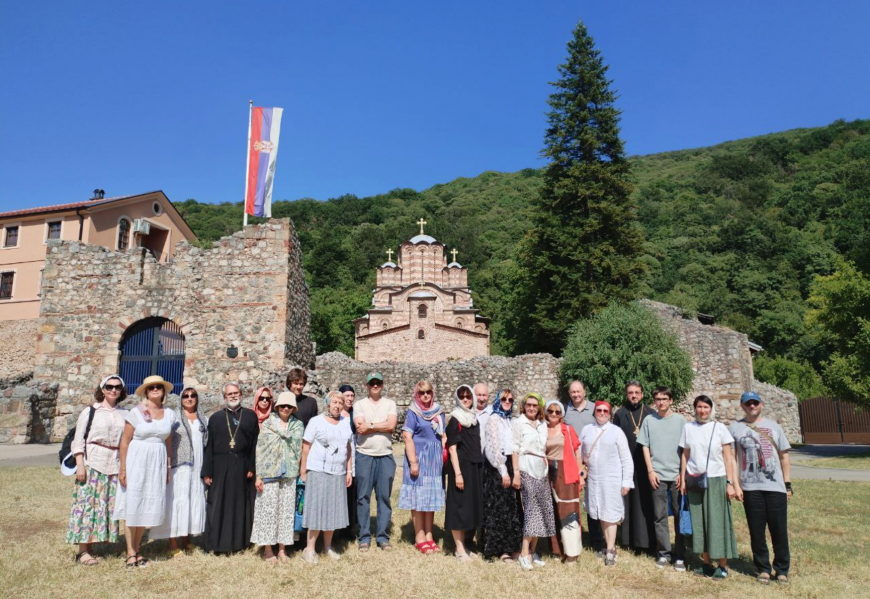 Пятница (4 июля) началась с посещения монастыря святого Стефана. Одна из 8-ми насельниц, составляющих сестричество обители, рассказала нам об истории монастыря, его святых и святынях. К сожалению, средневековый Спасо-Преображенский собор был закрыт в связи с полномасштабной реставрацией: временно богослужения совершаются в крошечной зимней церкви. Предложенное монахинями чаепитие возглавил архимандрит Авраам, которому в следующем году исполнится 80 лет. Во время братского и откровенного общения были затронуты простые и важные темы о духовной жизни, о дружбе сербов и россиян, о пастырском служении, об истории Церкви. На прощание отец Авраам благословил каждого паломника и пожелал нам доброго пути.