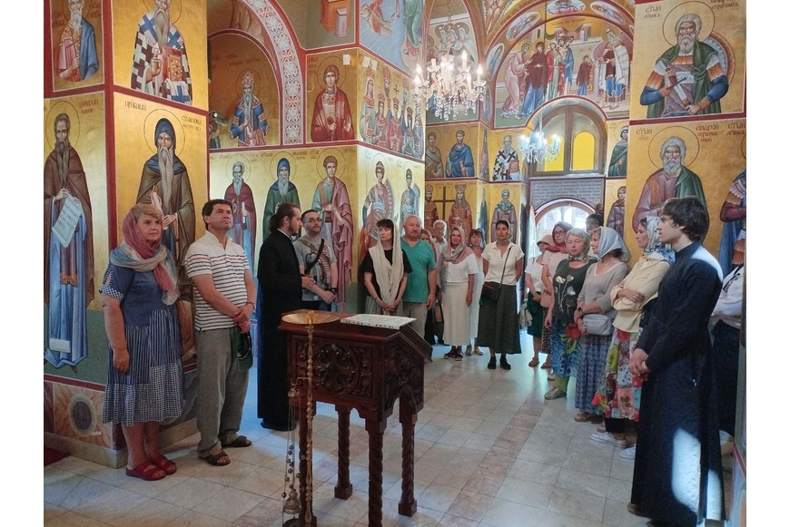 Возглавившему Божественную литургию протоиерею Сретену сослужили протоиерей Сергий Резухин, игумен Серафим (Кравченко), иерей Горан и диакон Михаил. Паломников из России приветствовала игумения Евгения, любезно пригласившая священнослужителей по окончании богослужения на кофе. Детский хор исполнил во время завтрака несколько песен на русском и сербском языках.