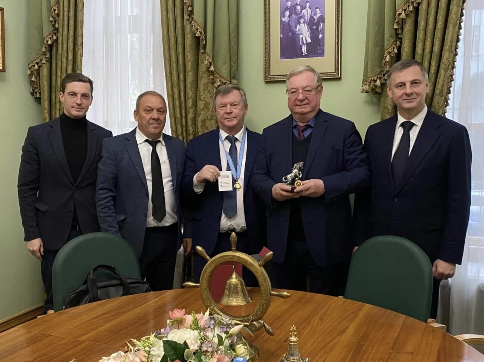 В начале встречи Сергей Степашин торжественно вручил Александру Брюханову удостоверение и золотой знак Почётного члена ИППО — заслуженное признание его многолетней работы на благо Отечества Общества.