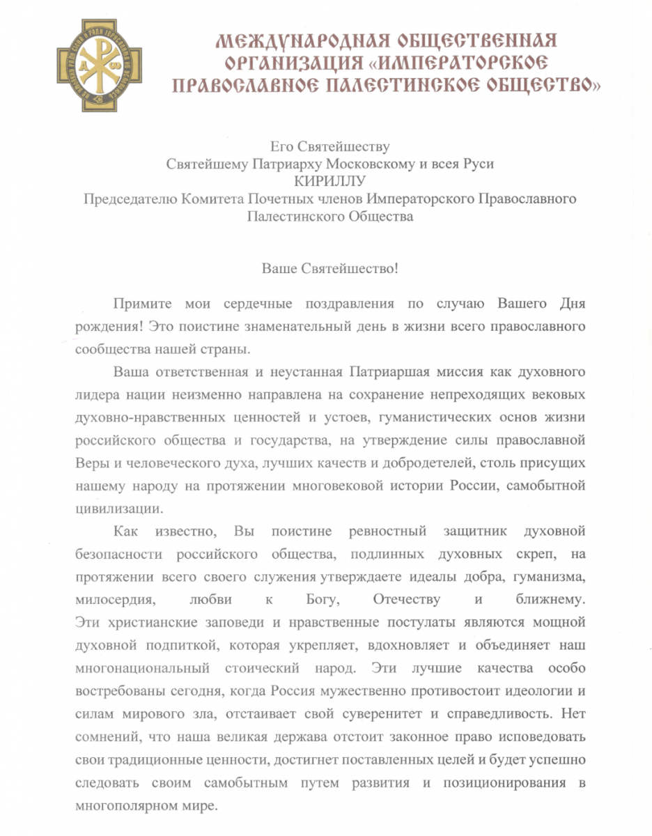20 ноября - День рождения Святейшего Патриарха Московского и всея Руси Кирилла, Председателя Комитета Почётных членов ИППО.