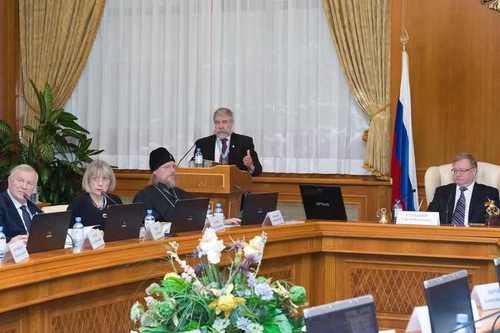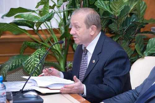 Затем слово было предоставлено управляющему делами ИППО М. И. Калинину, который представил на рассмотрение членов Совета список кандидатов на награждение почетными памятными знаками и грамотой ИППО.