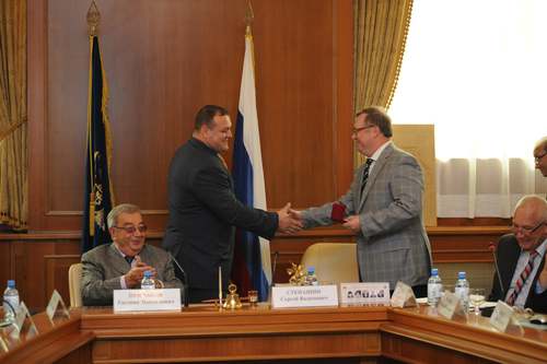 Вручение членских билетов Богданову Михаилу Леонидовичу – заместителю Министра иностранных дел Российской Федерации (верхнее фото) и Байдакову Сергею Львовичу – Префекту Центрального административного округа города Москвы