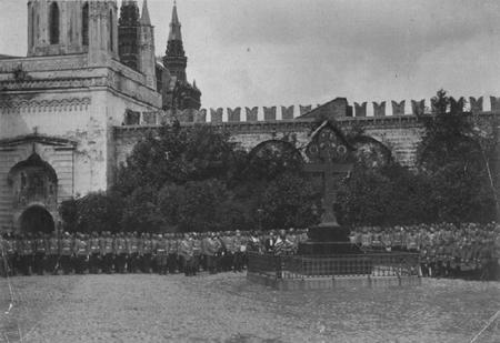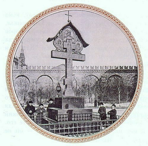 Панихида по великому князю Сергею Александровичу у памятника-креста на месте его убиения на территории Кремля близ Никольских ворот