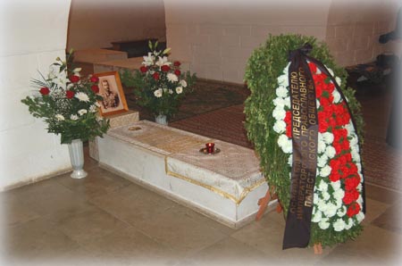 Великий князь Сергий был погребен в Чудовом монастыре, который был разрушен в начале 30-х годов. Вместе с тем был уничтожен и храм-усыпальница. Но все-таки, по Божиему Промыслу, пришло время собирать разбросанные камни. В 90-х годах, когда в Кремле производились ремонтные работы, было обретено место погребения убиенного Князя Сергия. 17 сентября 1995 года его останки были перенесены в Новоспасский монастырь. В храме Романа Сладкопевца проходят службы, и Князю Сергию верующие люди поклоняются как святому мученику. Перед его надгробием постоянно можно увидеть молящихся на коленях людей. Известно, что в монастыре уже начали записывать случаи исцелений, связанных с мощами Князя Сергия. Например, женщина, в течение 15-ти лет страдавшая экземой на руках, свидетельствовала, что получила исцеление, когда разбирала личные вещи Великого князя, обретенные на месте его захоронения.