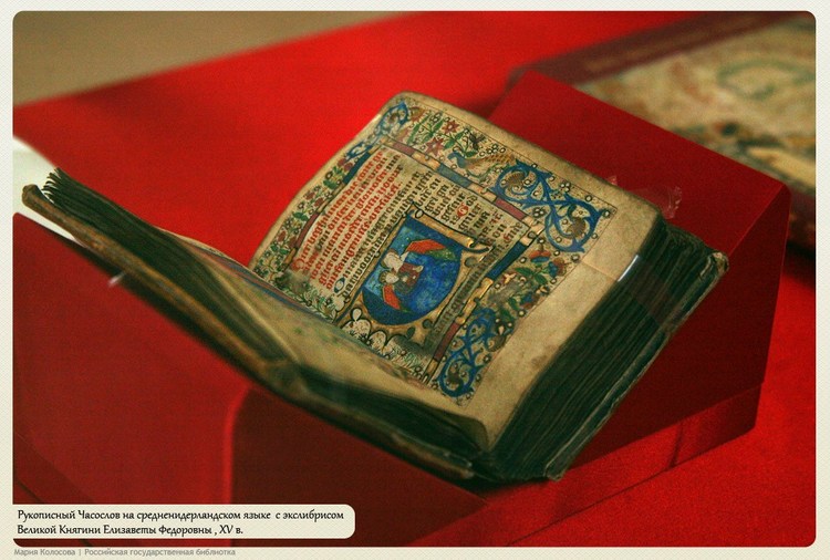 Удивительно и трагично, что Великая княгиня повторила судьбу своего мужа и после смерти вернулась на Восток — именно туда, куда она совершила свое первое, так сильно впечатлившее ее, путешествие, в храм святой Марии Магдалины в Гефсимании, на освящении которого она присутствовала, и где теперь покоятся ее мощи. Одни из наиболее ценных экспонатов на выставке принадлежали ей: маленький рукописный Часослов XV века на средненидерландском языке с 10 миниатюрами и сборник житий подвижников веры «Под благодатным небом».
