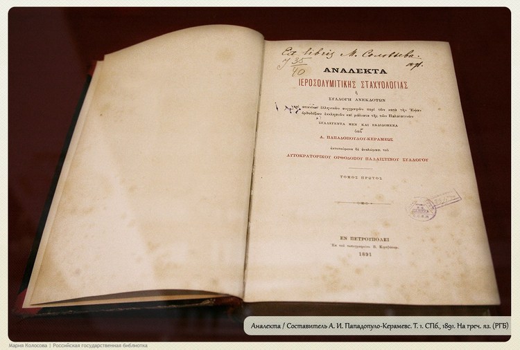 Кроме просветительской и гуманитарной работы, ИППО вело и научную: спонсировало археологические экспедиции, изучало древние манускрипты в монастырях. Эта деятельность обеспечила Обществу выживание и после 1917 года, когда оно стало работать при Академии наук, продолжая выпускать все тот же «Палестинский сборник». Приобретенные земли за годы советской власти оказались утрачены — на выставке можно увидеть грозную ноту посла Красина министру иностранных дел Великобритании Керзону от 1923 года: «Российское правительство заявляет, что все земли, гостиницы, больницы, школы и другие здания, как и вообще все другое движимое и недвижимое имущество указанного общества в Иерусалиме, Назарете, Кайфе, Бейруте и в других местах Палестины и Сирии, или вообще где бы оно ни находилось, составляет собственность Российского государства». Борьба за зарубежную собственность ИППО продолжалась на протяжении всего ХХ века. Кстати, Общество занималось не только Ближним Востоком — оно открыло и православное подворье в итальянском городе Бари (тогда — Барград), где хранятся мощи св. Николая Чудотворца. Любопытно, что проект странноприимного дома и храма во имя св. Николая Чудотворца принадлежит архитектору Алексею Щусеву, автору проекта главного здания РГБ.