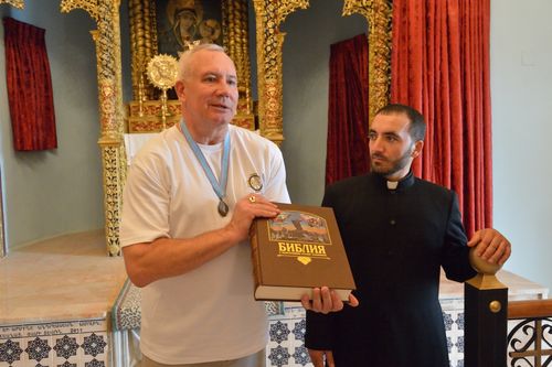 На память о посещении армянского монастыря Юрий Грачёв подарил настоятелю подарочное издание иллюстрированной Библии.