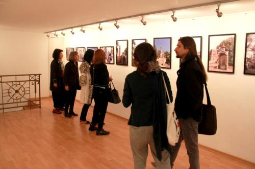 Гости с интересом осмотрели выставку, где наряду с раритетными старинными снимками представлены современные фотографии подворья св. праведной Тавифы и внутреннего убранства храма – жемчужины архитектурного искусства и одного из красивейших мест на Святой Земле.