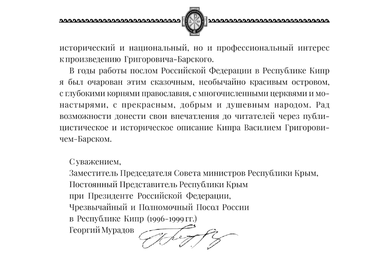 Предисловие редактора и издателя книги «По дорогам русского паломника Василия Григоровича-Барского. Об острове святых Кипр» Георгия Мурадова