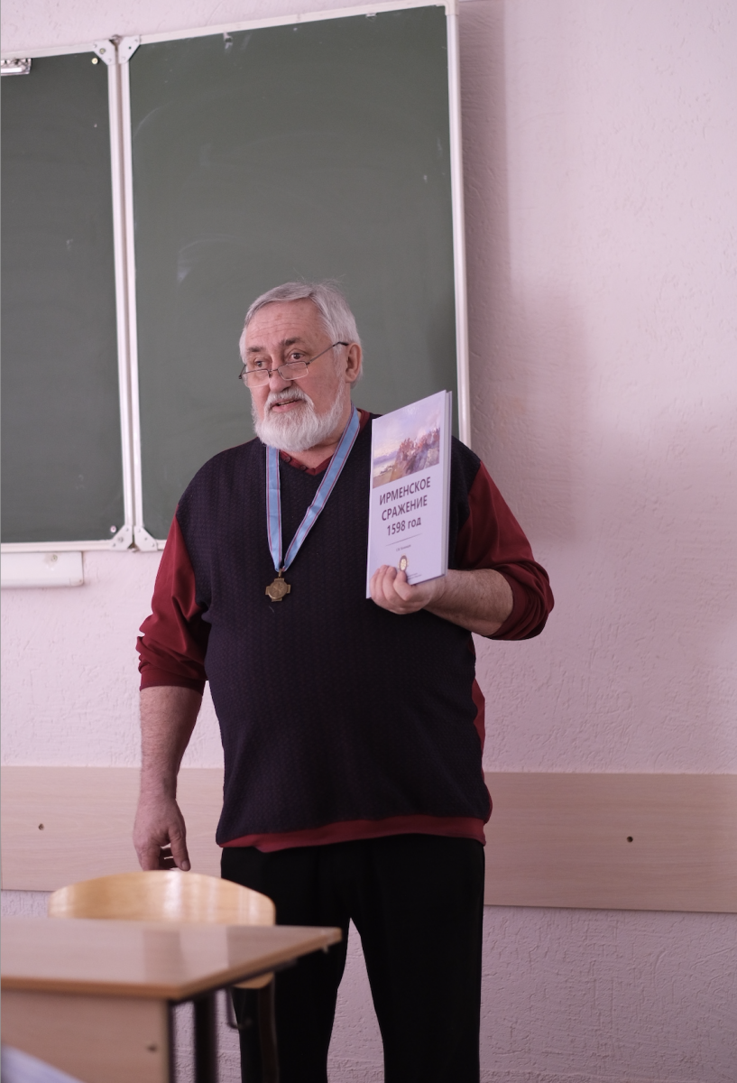 Автор книги Сергей Колонцов – действительный член ИППО, эксперт по культурным ценностям Министерства культуры Российской Федерации, археолог, автор многочисленных научных публикаций по археологии и охране археологического наследия. Сергей Владимирович рассказал студентам-историкам об Ирменском сражении, в ходе которого отряд тарского воеводы Андрея Воейкова полностью разгромил войско хана Кучума, правителя Сибирского ханства. Впоследствии на верность русскому царю присягнули почти все западно-сибирские кочевые и оседлые племена, огромная территория от Урала до реки Обь вошла в состав Русского государства, которое перешло к дальнейшему стремительному продвижению на восток.