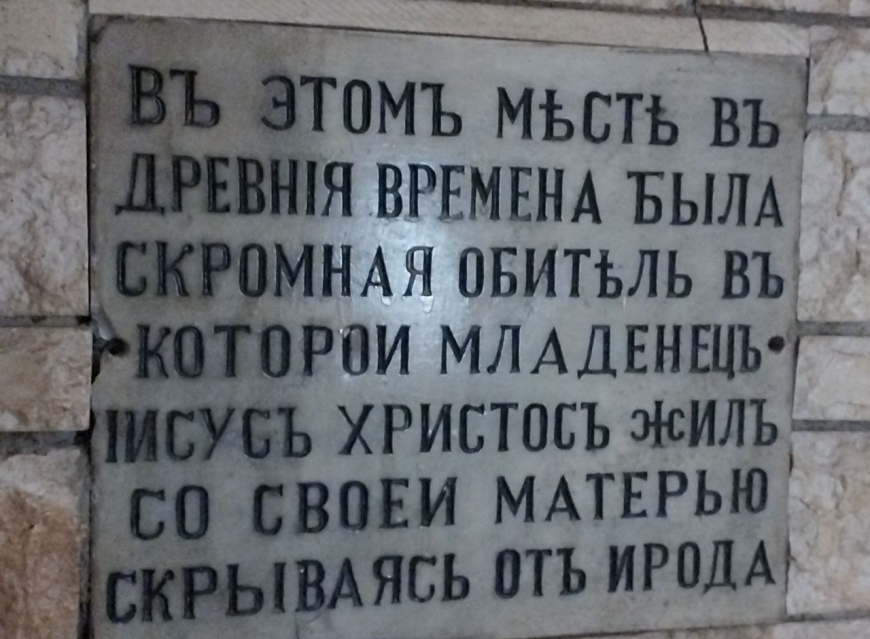 Далее путь лежал в церковь святых мучеников Сергия и Вакха (IV в.), известную тем, что на этом месте в течение 3-х месяцев проживало Святое Семейство. В крипте сохранились напольные плиты I века, а также камень, который служил Богомладенцу ложем для сна. При входе в церковь (слева) представлен баптистерий IV столетия. Приложившись к мощам святых мучеников Сергия и Вакха, мы продолжили свой пеший путь по старому Каиру. В храме XI в. в честь святой Варвары игумен Серафим (Кравченко) совершил молебен перед мощами великомученицы, а в женском монастыре во имя Георгия Победоносца перед ковчегом с его мощами отслужил молебен протоиерей Георгий Крейдун.