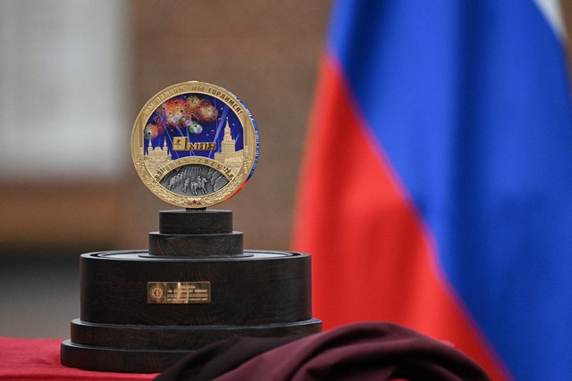 Открыл презентацию медали «80 лет Великой Победы» ее автор, действительный член ИППО, генеральный директор Волго-Вятского монетного двора Александр Квашнин. Он рассказал, как создавалась медаль, на разработку проекта ушло почти полтора года, вес медали составляет 1418 г – по числу дней Великой Отечественной войны, диаметр – 120 мм, толщина – 25 мм. Она выполнена из покрытого золотом серебра 999-й пробы. На лицевой стороне в верхней части изображен салют над Красной площадью и Кремлем в Москве, в нижней – сюжет исторического парада на Красной площади, состоявшегося 24 июня 1945 года. Медаль включает электронные и механические компоненты, которые впервые были использованы при создании подобного памятного сувенира. Красочность салюта обеспечивают подсветка, ультрафиолетовая печать и инкрустация цветными недрагоценными вставками. Внутри медали находится электронно-механический компонент, который обеспечивает движение войск в нижней части медали и воспроизведение песни «День Победы» через интегрированный динамик.