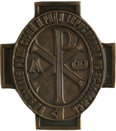 Белое поле с золотыми буквами, окруженное черною лентою, это – настоящая видимая сторона Церкви, основатель которой Иисус Христос, как солнце в мире, сияет в ней Своим именем (Христос), пред которым преклонится всякое колено небесных, земных и преисподних (Фил. 2, 10). Как человек, собирая мертвые буквы в одно целое, составляет из них живое слово, так Дух Святой, собирая смертных людей, составляет из них одно живое тело, которого Голова – Начальник есть Иисус Христос (Еф. 1, 22–23; 2, 22; 4, 15-16). В Нем, в Истинном Слове Божием, черпают свою силу, премудрость и славу 24 апокалипсические старца, окружающие Его в белых одеяниях с золотыми венцами. Белое воинство Христа (Апок. 19, 14) борется с черным злом. Каждый их них, неся крест терпения Христова и укрываясь щитом веры, исповедуемой Церковью, до конца (Мт. 24, 13) стоит на поле брани. «Не умолкну, взывает он, ради Сиона, и ради Иерусалима не успокоюсь, доколе не взойдет, как свет, правда его, и спасение его – как горящий светильник». Другая, совсем белая сторона знака, сокрытая от взоров людей, говорит нам о сокрытом сокровище Царствия Небесного (Мт. 13, 44). О, воин Христов! не бойся принять этот крест: по ту сторону его тебя ожидает вечное блаженство. Твоя непобедимая вера (Иоанна. 5, 4) ведет тебя к горе Сиону и ко граду Бога живого, к Небесному Иерусалиму и тьмам Ангелом, к торжествующему собору и церкви первенцев, написанных на небесах, и к Сиди всех Богу, и к духам праведников, достигнувших совершенства, и к Ходатаю нового завета Иисусу (Евр. 12, 22-24). Там благословит тя Господь от Сиона, и узриши благая Иерусалима. Эти две стороны Единой Церкви Христос соединяет Своим крестом, убив вражду на нем. Своею кровью, пролитою на сем кресте, Он примиряет земное с небесным, человека с Богом (Еф. 1, 10; 2, 16; Кол. 1,20). Полагается и голубая лента с 2-мя красными полосками при сем знаке. Как эти две алые полоски небесной зари восходящего солнца пробиваются в замкнутой крестом голубой ленте ясного неба, так в вечном мире вечная взаимная любовь Бога и людей истекает из этого великого, чудного креста Господня. <…> О вы, напоминающие о Господе, члены и сотрудники Палестинского Общества! Не умолкайте, не умолкайте пред Ним, доколе Он не восстановит и доколе не сделает Иерусалима славою на земле. Приготовляйте путь народу! Равняйте, равняйте дорогу, убирайте камни! Поднимите знамя для народов! (Ис. 62, 7, 10). Мария Кржижевская Сообщения ИППО. СПб., 1893. Февраль. С.5–8. |