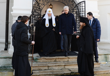 Святейший Патриарх Кирилл и мэр Москвы С.С. Собянин ознакомились с ходом реставрационных работ в Новоспасском монастыре