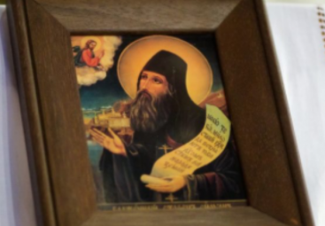 Памятник Силуану Афонскому в селе Гомати на полуострове Халкидики