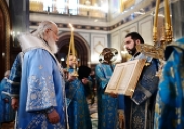 Святейший Патриарх Кирилл совершил утреню с чином Погребения Пресвятой Богородицы в Храме Христа Спасителя