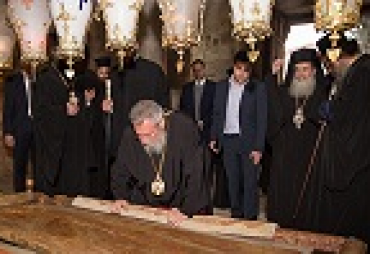 Архиепископ Кипрский Хризостом поклонился святыням Иерусалима и встретился с Патриархом Иерусалимским Феофилом III