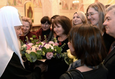 Представители российской прессы тепло поздравили Святейшего Патриарха Московского и всея Руси Кирилла, Председателя Комитета Почетных членов ИППО, с шестой годовщиной интронизации