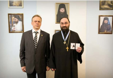Зампред ИППО Олег Шабуневич вручил членский билет и знак ИППО митрополиту Новосибирскому и Бердскому Никодиму
