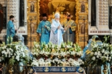 В праздник Успения Пресвятой Богородицы Предстоятель Русской Церкви совершил Литургию в Храме Христа Спасителя