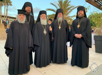 Приём в честь Дня России, состоявшийся на Сергиевский подворье в Иерусалиме, посетил Патриарх Святого Града Иерусалима и всей Палестины Феофил
