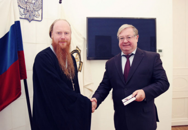 Сергей Степашин вручил членский билет и знак ИППО протоиерею Димитрию Рощину