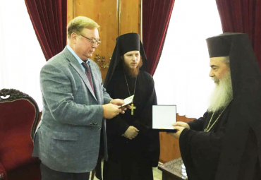 Посол России в Израиле, действительный член ИППО Анатолий Викторов нанёс визит Блаженнейшему Патриарху Святого града Иерусалима и всей Палестины Феофилу III