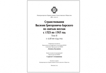 Вышел в свет второй том книги «Странствования Василия Григоровича-Барского по святым местам с 1723 по 1747 год»