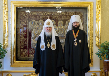 Председатель Комитета Почетных членов ИППО Святейший Патриарх Кирилл вручил зампреду Общества митрополиту Волоколамскому Антонию орден благоверного князя Даниила Московского