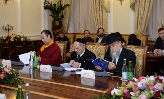 Representing the religious communities – ICR members – were Mr. Damir Gizatullin, first deputy chairman of the Spiritual Administration of Muslims of the Russian Federation; Rabbi Zinovy Kogan, vice president for relations with governmental, non-governmental and religious organizations of the Jewish Religious Congregations of Russia; Mr. Ilfar Khasanov, deputy chairman of the Spiritual Administration of Muslims of Tatarstan; Gelong Sanjey-lama, representative of the Buddhist Traditional Sangha in Moscow; Mr. Alexander Boroda, President of the Federation of Jewish Communities of Russia; Mr. Sh. Kadyrgulov and Ms. R. Bagatova, representatives of the Central Muslim Spiritual Board of Russia; and Mr. Sh. Pshikhachev, plenipotentiary representative of the Coordination Centre of Muslims of the North Caucasus.