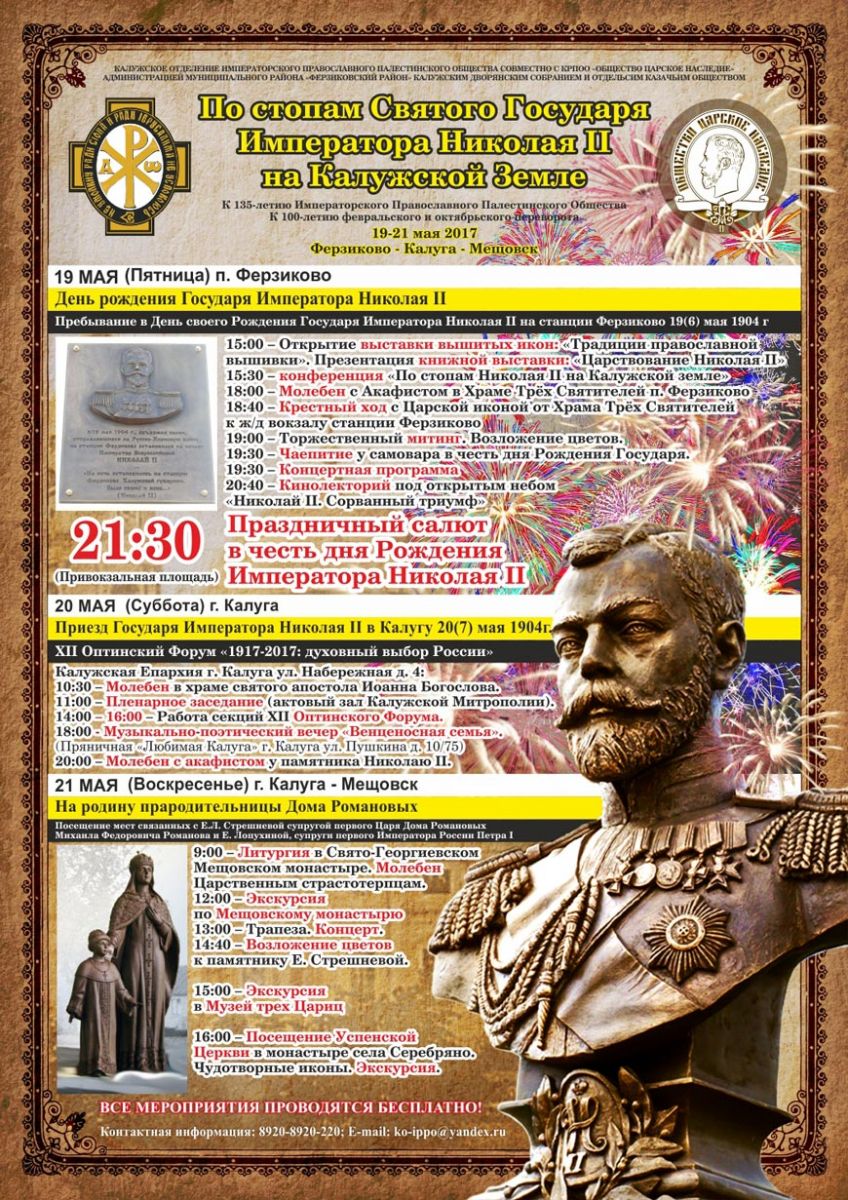 19-21 мая Калужское отделение ИППО проводит мероприятия, посвящённые памяти Николая II