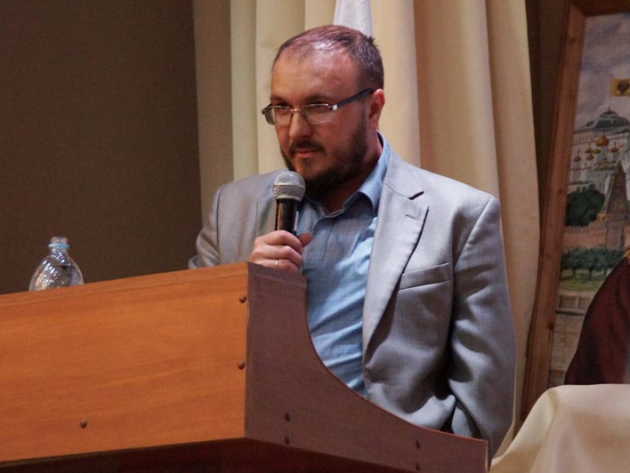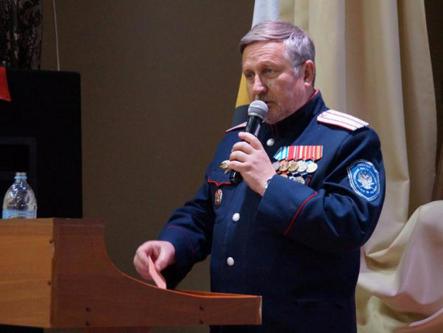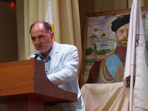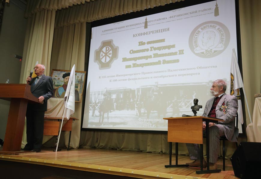 Затем начала свою работу конференция «По стопам Николая II на Калужской земле». Благословил проведение конференции отец Симеон, окормляющий Козельское казачество. Открыл её председатель Калужского отделения ИППО Виталий Гороховатский.