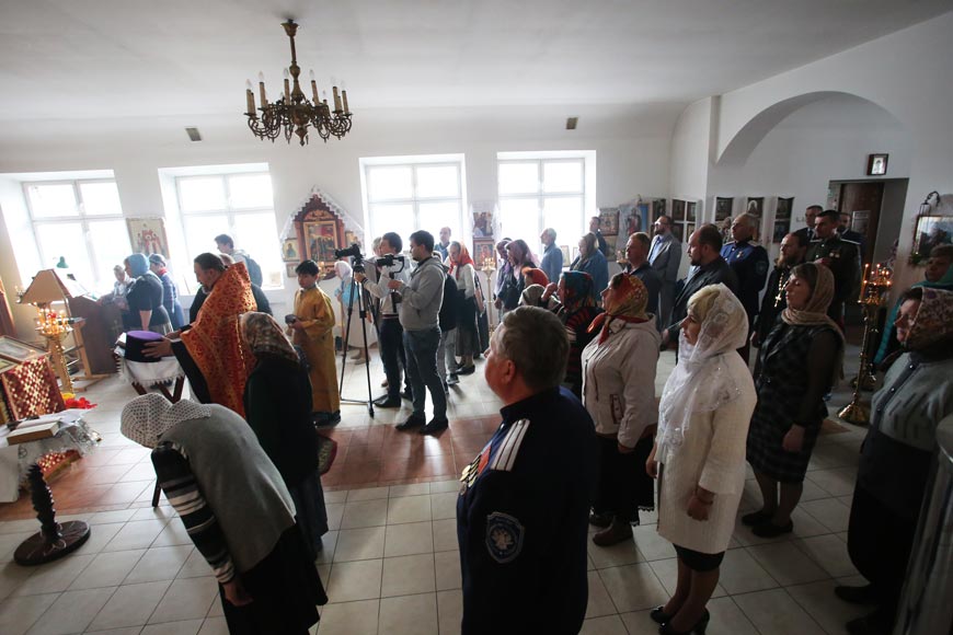 Молящимся в храме были подарены сборники акафистов (акафистники) и иконы Царя Николая II.