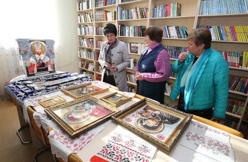 Мероприятия начались с открытия выставки вышитых икон «Православная вышивка» мастериц из села Ахлебинино, которые вместе с Калужским отделением ИППО возрождают традиции вышивки. К 300-летию Дома Романовых мастерицами этого села были вышиты платья для Государыни Императрицы Александры Фёдоровны. Сейчас мастерицы работают над вышивкой иконы Святого Императора Николая II.
