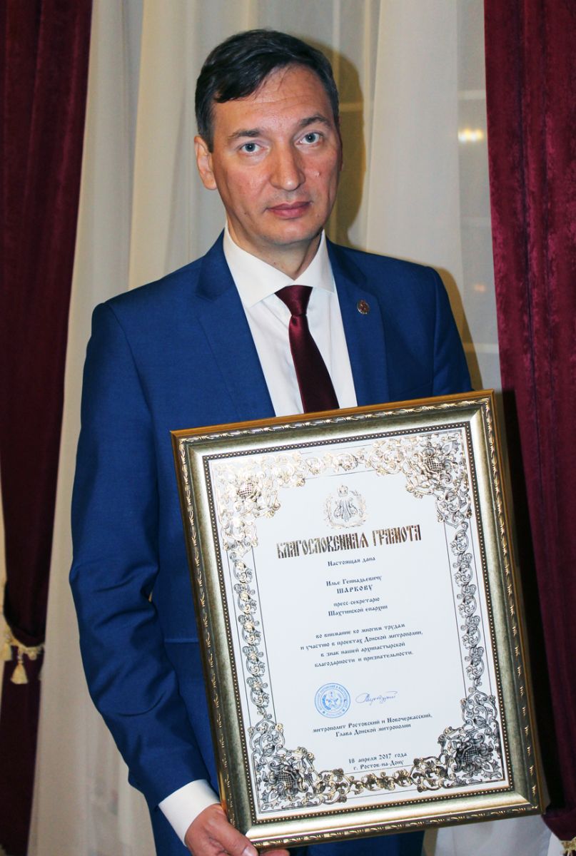 Член ИППО Илья Шарков награждён Благословенной грамотой Главы Донской митрополии