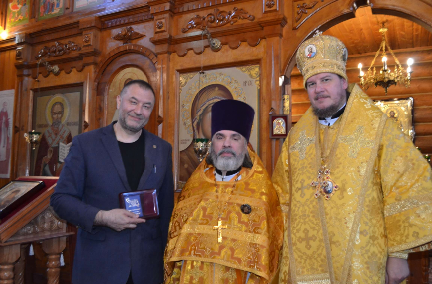 Знак и удостоверение священнику в Сибирь из Москвы доставил Председатель правления Московской областной организации “Союз писателей России”, академик РАЕН, писатель Сергей Антипов.