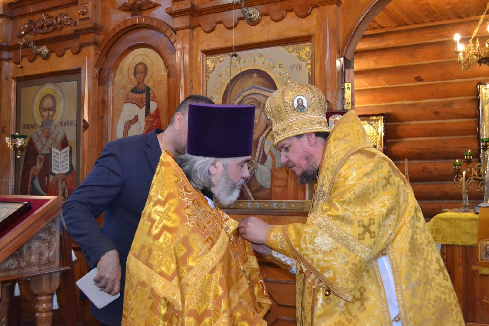 Знак на священника-писателя возложил в день престольного праздника правящий архиерей Колпашевской епархии РПЦ епископ Филарет (Тихонов).