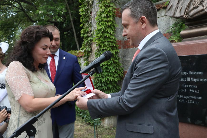 В приветственном слове министр культуры Республики Крым Арина Вадимовна Новосельская отметила важность и актуальность мероприятия. Она обратила внимание на то, что памятник выдающемуся правителю Государства Российского, Царю-Миротворцу, Императору Александру III открыт именно в Массандровском дворце – в удивительном и неповторимом уголке Крыма, наполненном историей, гармонией и красотой, для которого он и был создан, но который, к сожалению, не увидел его в законченном виде.