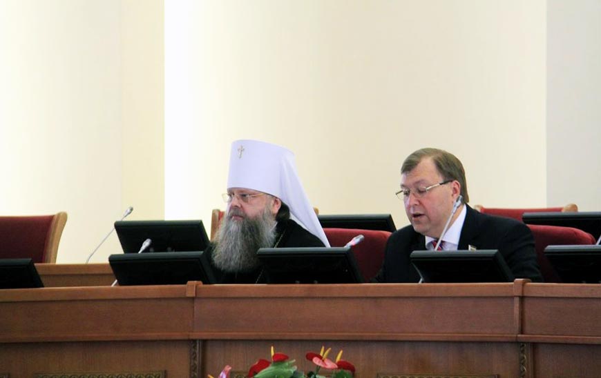 Заседание открыл председатель Законодательного собрания Ростовской области Александр Ищенко. Во вступительном слове он отметил, что обязанность любой власти состоит в том, чтобы слышать голос Церкви, без этого невозможно развитие общества. После выступления председатель Законодательного собрания предоставил слово митрополиту Ростовскому и Новочеркасскому Меркурию.