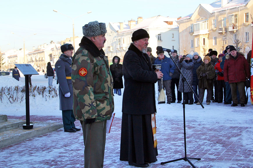 В открытии памятника принял также участие настоятель Михайло-Архангельского собора, действительный член ИППО отец Анатолий, который совершил краткий молебен и окропил памятник святой водой.