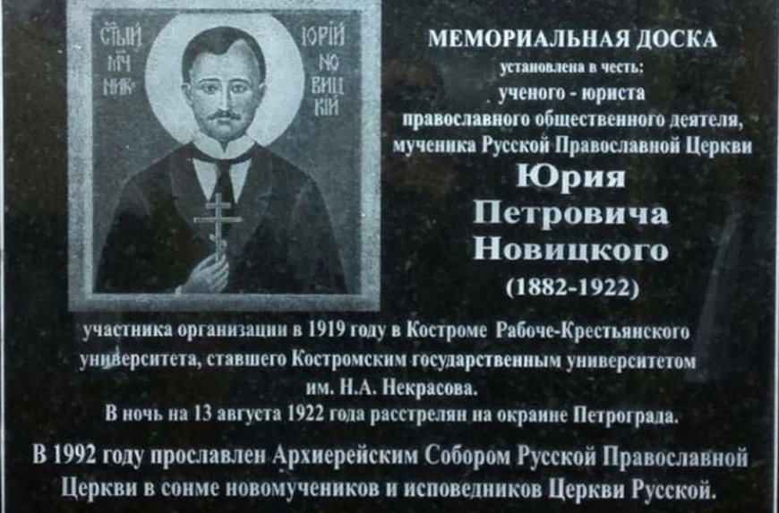21 июня 2016 г. в 11.00 в Костромском государственном университете им. Н.А.Некрасова при участии Костромского отделения ИППО состоится открытие и освящение мемориальной доски, посвященной профессору Юрию Петровичу Новицкому – одному из основателей будущего госуниверситета им. Н.А.Некрасова (в 1919 году – Костромского рабоче-крестьянского университета, первого высшего учебного заведения в Костроме), обвиненному в сопротивлении изъятию церковных ценностей и расстрелянному в ночь с 12 на 13 августа 1922 года.