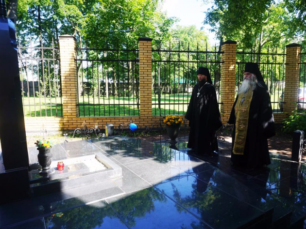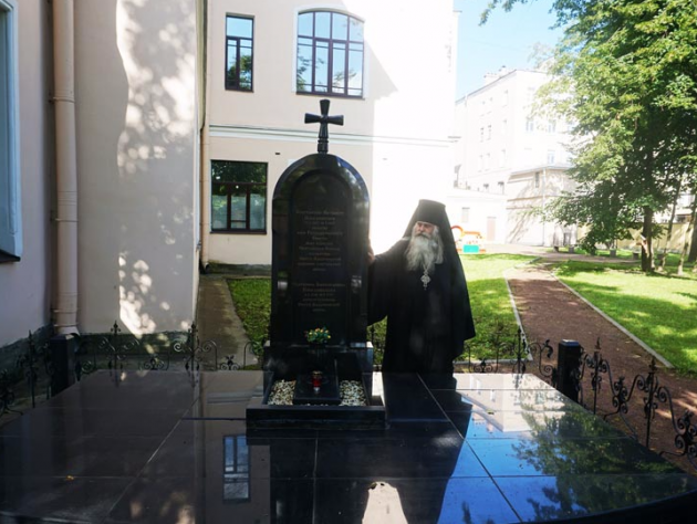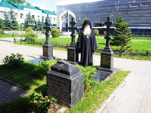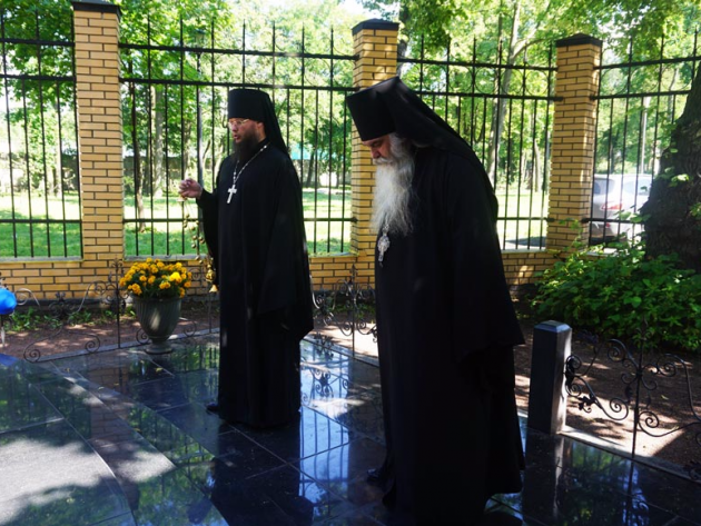 Архимандрит Тихон (Затёкин) сфотографировал надгробие и записал сохранившийся на нём текст, после чего совершил краткую литию по почившей настоятельнице Воскресенской обители.