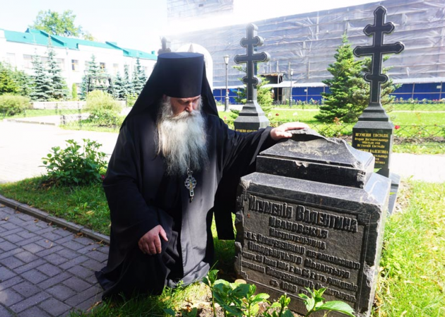 Среди этих могил он увидел сохранившееся дореволюционное мраморное надгробие настоятельницы игуменьи Валентины (Ивановской), которую в свою бытность св. прав. Иоанн Кронштадтский называл «Наша благодетельница». Матушка игуменья Валентина состояла членом-сотрудником Императорского Православного Палестинского Общества.