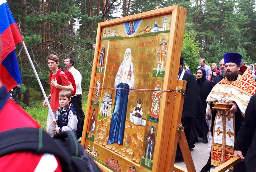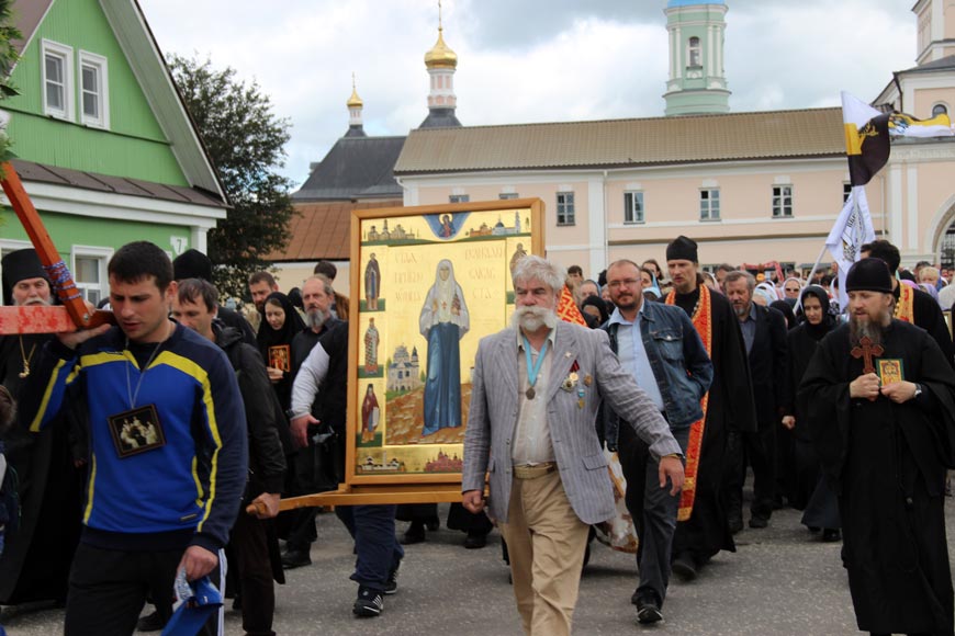 Часть маршрута крестного хода икону Елисавета Феодоровна и Благословенная Калужская Земля несли председатель Калужского отделения Виталий Гороховатский и председатель общества «Царское наследие» Сергей Зотов.