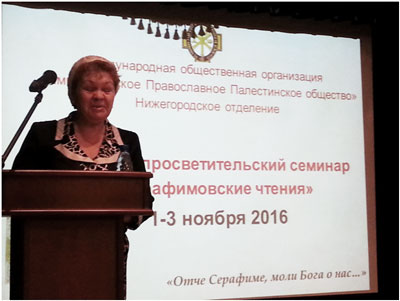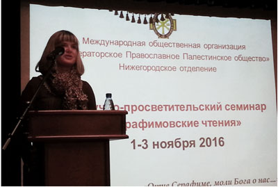 - Колобова С.А. , секретарь Нижегородского отделения ИППО, доктор политических наук, профессор НГЛУ им. Добролюбова: «Святая Дивеевская земля в истории царской семьи»