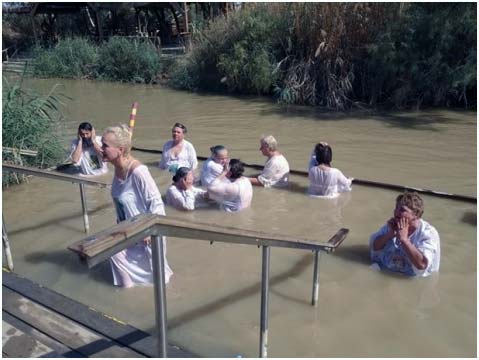 Члены Императорского Палестинского Общества в реке Иордан
