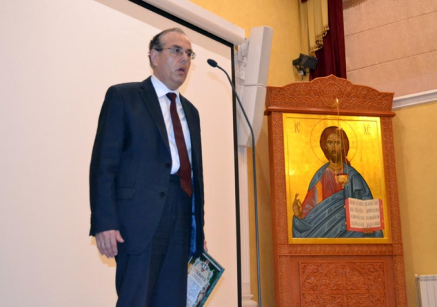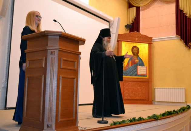Слова признания и восхищения картиной на сцене духовной семинарии выразила главный врач больницы № 40, член Нижегородского отделения ИППО Ирина Малиновская.