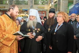 Из города Карасука Новосибирской области, из Свято-Троицкого храма, на ярмарку доставили Иверскую икону Божией Матери.