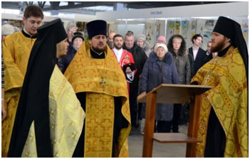 Открылась выставка молебном, который возглавил руководитель отдела по взаимодействию Церкви с обществом протоиерей Виктор Булгаков.