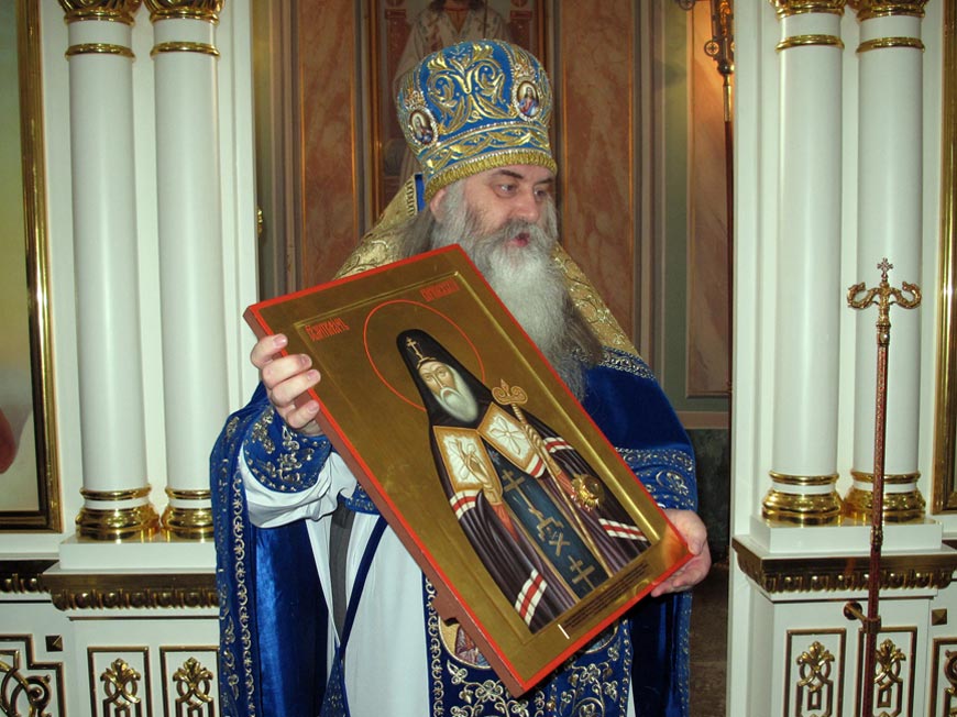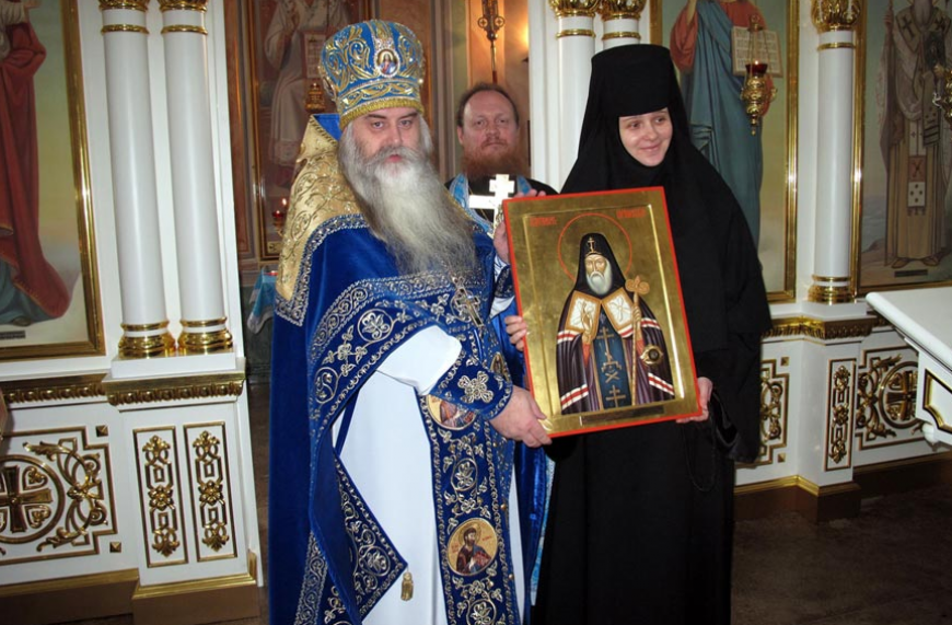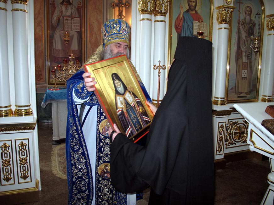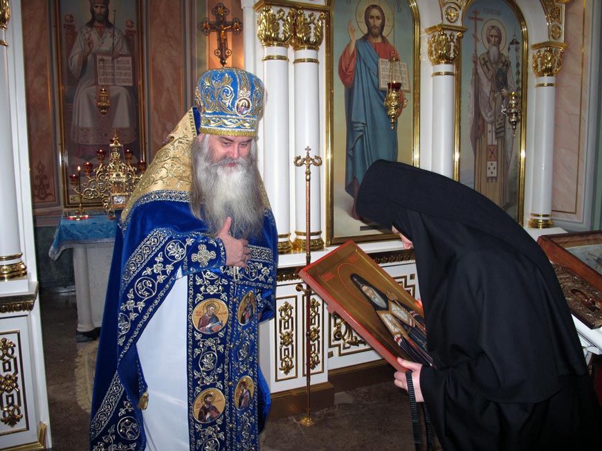 Матушка Алипия сердечно поблагодарила о. Тихона за этот дар, преподнесенный им для Нижегородского Архиерейского подворья, и рассказала о том, что в этом здании братства св. Кирилла и Мефодия до 1917 года неоднократно проходили совещания Нижегородского Отдела ИППО, в которых всегда принимал участие нижегородский купец первой гильдии, потомственный почетный гражданин, меценат, строитель и попечитель многих храмов города Нижнего Новгорода и губернии Митрофан Михайлович Рукавишников.